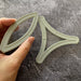 The stamp is made from 6mm thick clear acrylic so that its easy to handle, and you have a clear view of the fabric underneath so you can centre or fussy cut motifs. The stamp is made from the highest quality rubber and marks a solid stitching line and dashed cutting line. There is also a dash to mark the centre of the curves.